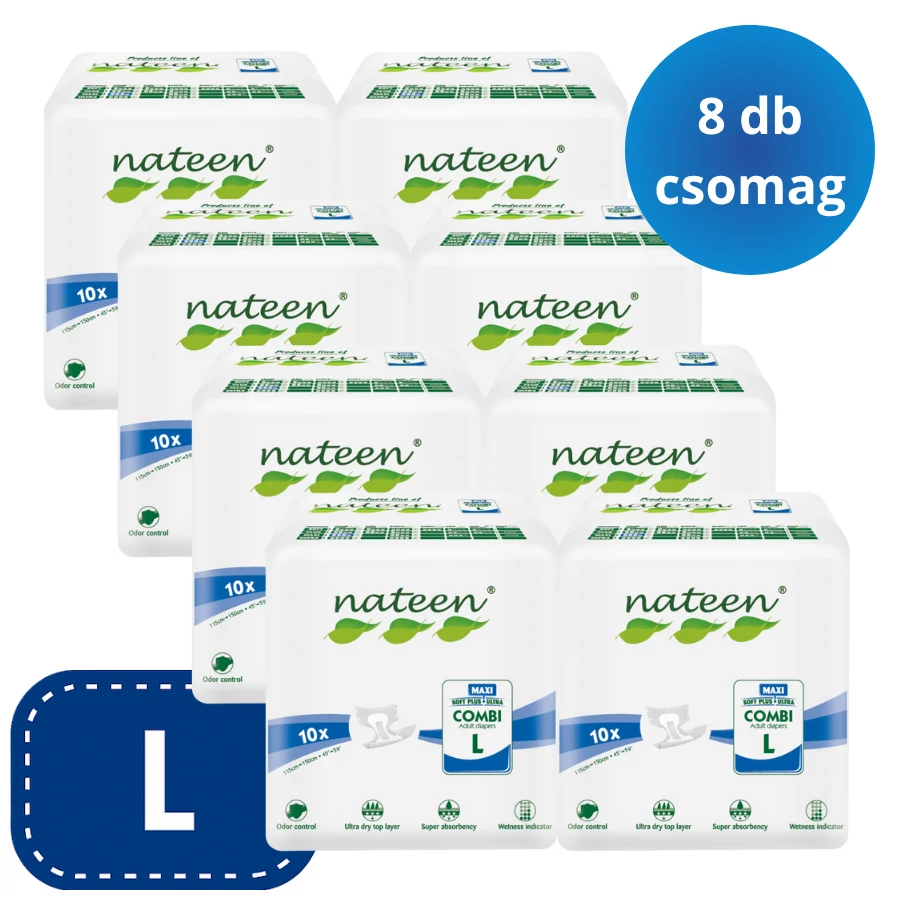 A Nateen pelenkák a kényelem, biztonság és diszkréció tökéletes kombinációi. Ultra-nedvszívó magjuk akár több liternyi folyadékot is képes megkötni, miközben a légáteresztő, bőrbarát kialakítás segít megelőzni az irritációt. Szivárgásgátló szegély, szagsemlegesítő technológia és nedvességjelző – minden részlet a gondoskodásról szól. Ideális választás érzékeny bőrűeknek is. Nateen: amikor a minőség nem lehet kompromisszum.