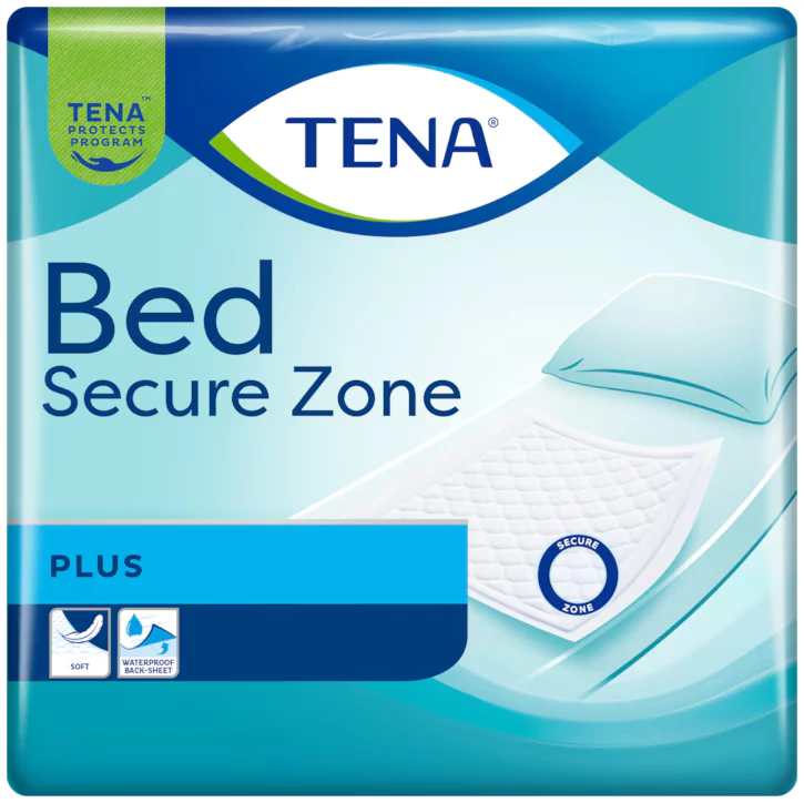 A puha TENA Bed Secure Zone Plus egy megbízható ágyvédő inkontinencia esetére. Ha akaratlan vizeletvesztés vagy ágybavizelés történne, megvédi a matrac, a szék, a kanapé vagy a kerekes szék felületét. A termék felülete a nedvszívó magnak és a vízálló hátoldalnak köszönhetően száraz marad, így véd a szivárgástól. A Secure Zone nyomat egyenletesen elosztva, a termék különböző részeibe szívja be a nedvességet, a szuperabszorbens mikrogyöngyök pedig bent tartják azt. A felnőtt méretű ágyvédő takaró bőrgyógyászatilag tesztelt, hogy kellemes legyen rajta ülni vagy feküdni. A TENA Bed Secure Zone Plus többféle méretben is kapható, így sokféle igényt képes kielégíteni.